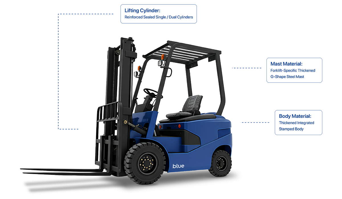 Built for the unpredictable conditions of real worksites, BLUE forklifts are designed to help reduce risk in busy, high-traffic environments where visibility, control, and awareness matter most.
